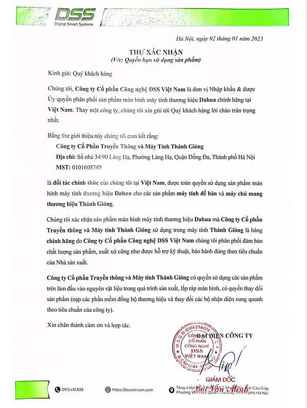 Theo thỏa thuận hợp tác, Máy Tính Thánh Gióng sẽ trở thành đối tác phân phối và triển khai chính thức các sản phẩm Dahua Technology tại thị trường Việt Nam bao gồm màn hình máy vi tính, camera giám sát
