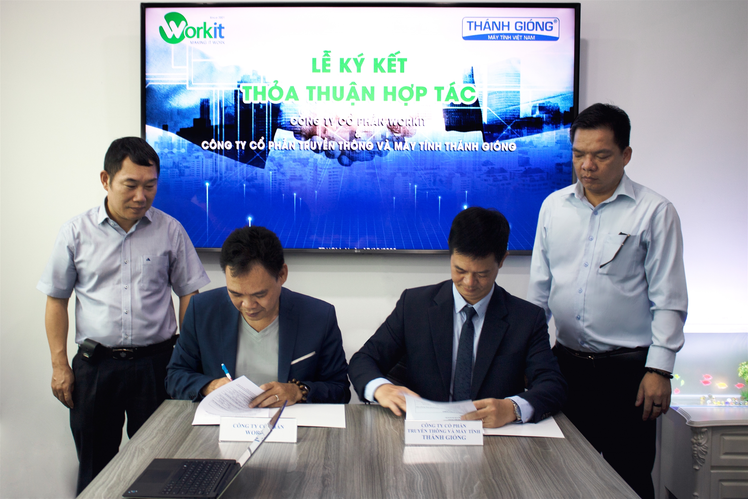 Hai bên đã cùng nhất trí và ký vào văn bản hợp tác nhằm thắt chặt hơn nữa mối quan hệ giữa Công ty Máy tính Thánh Gióng và Công ty Workit